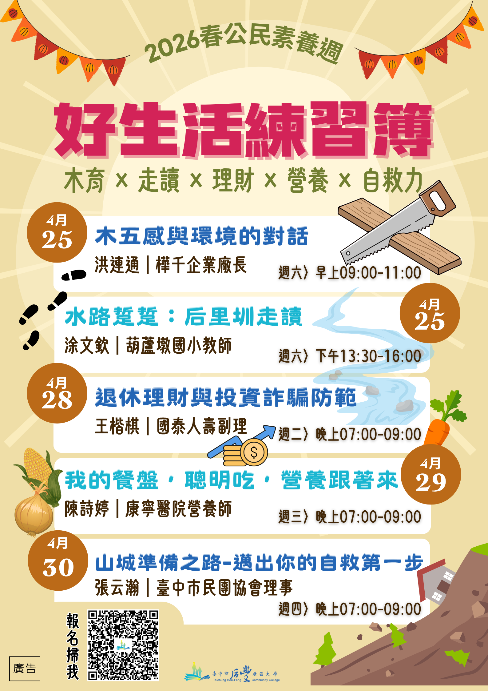 【轉知】臺中市后豐社區大學辦理115年第1期「公民素養週講座」-朝陽科技大學